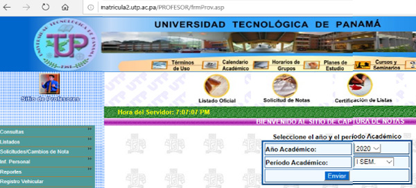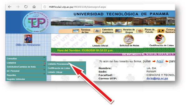 2. Seleccionar Listado Provisional del Menú Listados del sitio del Profesor