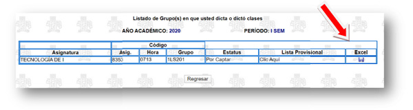 4. Para descargar la lista de asistencia en formato Excel haga clic en el icono