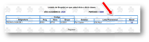 O bien, presione Clic Aquí en la columna Lista Provisional si desea que se muestre en pantalla.