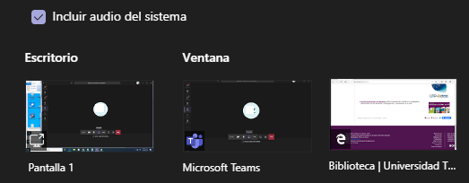 Al momento de compartir debe seleccionar Incluir audio del sistema.