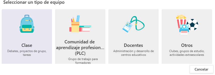 Si al crear un equipo no aparece la opción para crear una clase, posiblemente no tiene el permiso asignado, escriba un correo a [email protected] para que se le habilite.