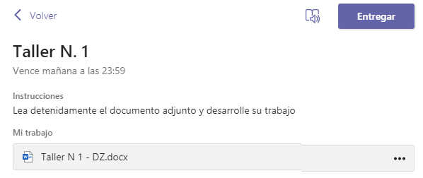Para verificar la entrega de su trabajo busque en el menú Tareas. En la sección Asignado busque la tarea y haga click sobre ella, si la misma muestra a la derecha un ganchito ya fue recibido. Además, su tarea aparecerá en la sección Completado.