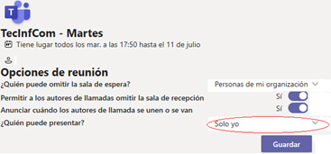 Seleccione en la pregunta "Quien puede presentar" la opción "Solo yo" y presione el botón Guardar.
