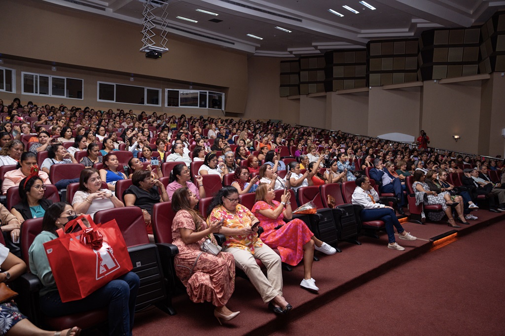 La Dra. Ángela Laguna Caicedo, Rectora de la UTP, brindó un mensaje a las mamás presentes en el Teatro Auditorio, donde las felicitó y las invitó a pasar un día de regocijo junto a sus familiares.