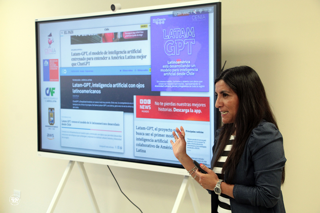 La directora de Gestión Operacional del CENIA, Ing. Mónica Soto explicó detalles sobre el avance de la IA en el Mundo, así como su desarrollo y adopción, implementadas en sectores claves para robustecer la opinión pública y enriquecer, desde la técnica, la toma de decisiones.