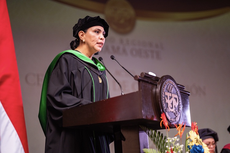 La Dra. Mirtha Moore, Vicerrectora Académica de la UTP, en representación de la Rectora de la UTP, expresó: “Hoy celebramos, precisamente, una victoria personal que es, al mismo tiempo, el triunfo colectivo de personas unidas por el afecto, por el cuidado, por el amor. Pero tal logro, va más allá de cada uno de los que recibirán el tan anhelado diploma y de sus seres queridos, también trasciende y llega a otro círculo mucho más amplio… Cultiven ideales que los lleven a nuevos rumbos, a alcanzar nuevas metas, y esfuércense para que su nación también alcance esos logros.”