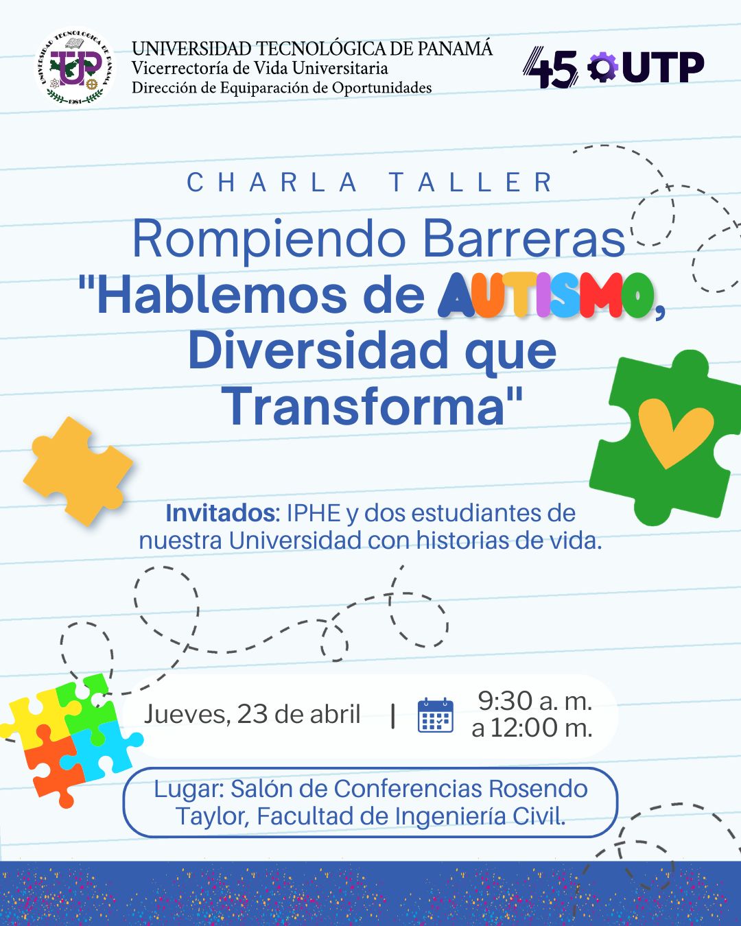 Se realizará Charla-Taller Rompiendo Barreras Hablemos de Autismo, Diversidad que Transforma.