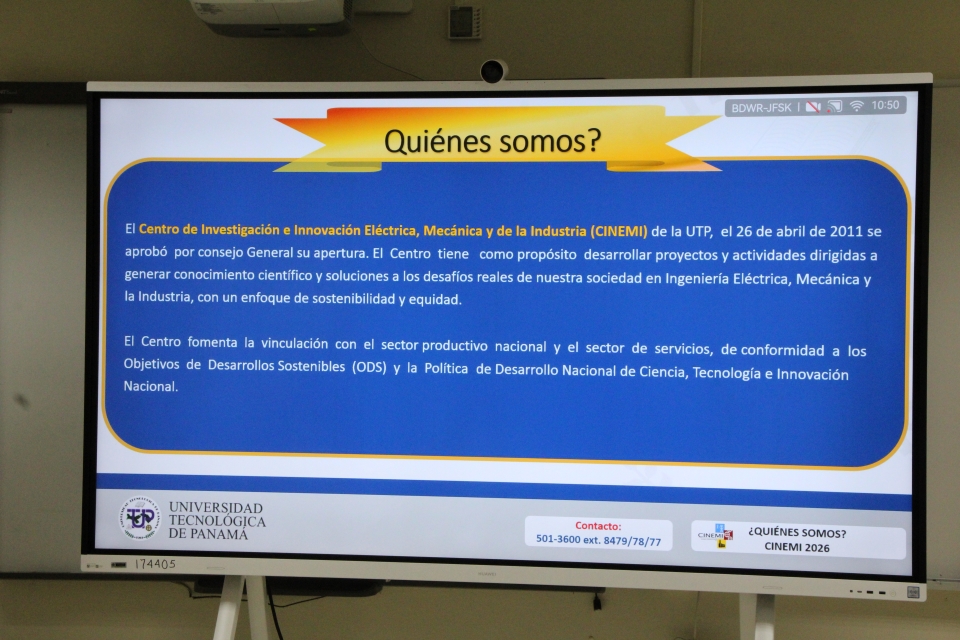 El Centro de Investigación e Innovación Eléctrica, Mecánica y de la Industria (CINEMI) de la Universidad Tecnológica de Panamá realizó, el 16 de marzo, una gira de promoción en la UTP Chiriquí, con el objetivo de dar a conocer los servicios que ofrece en materia de investigación, docencia, autogestión y laboratorios.