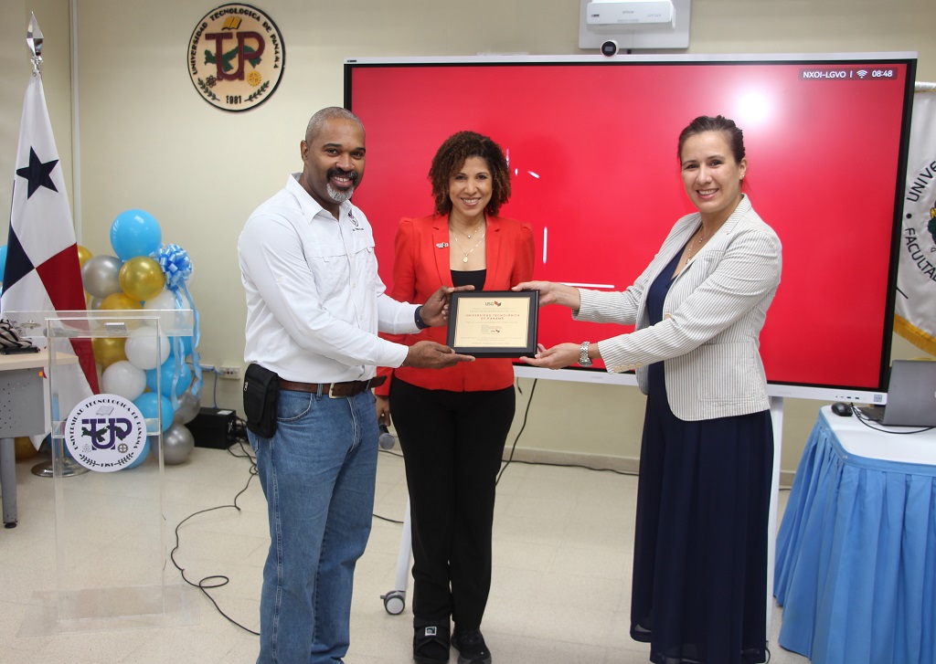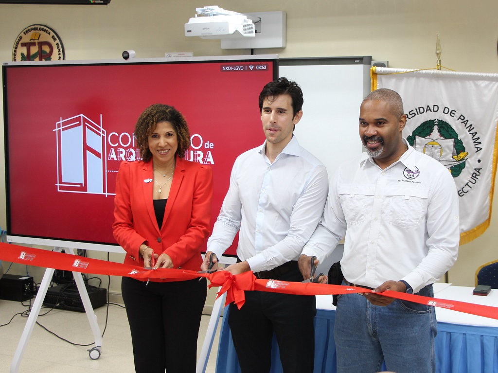 La inauguración de este evento y el curso teórico, tuvo lugar en el Salón de Conferencias Roberto Barraza de la Facultad de Ingeniería Eléctrica (FIE), donde se le entregó un reconocimiento a la UTP por ser aliado estratégico de la compañía USG. Por la UTP participó el Vicedecano de Investigación, Postgrado y Extensión de la FIC. Dr. Ariel Grey, y por la USG, el Lcdo. David Martín, director de USG Latino América; la Arq. Susana González, gerente senior de Servicios Arquitectónicos y la Arq. Mirla Parks, Representante de Servicios Técnicos.