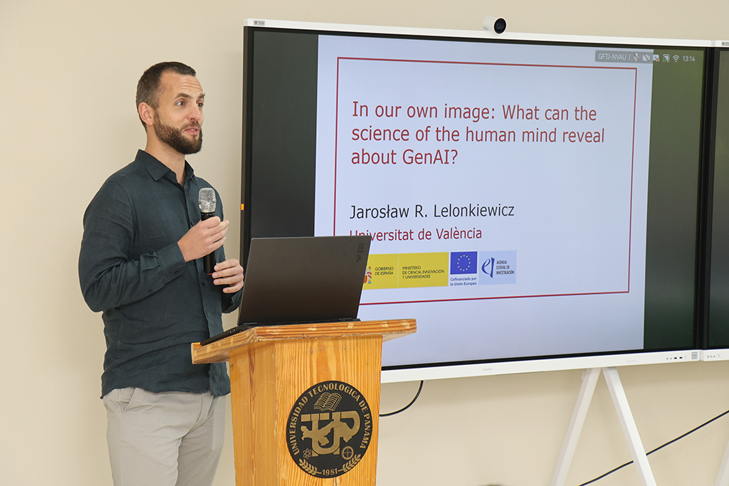 El expositor de esta actividad fue el Dr. Jaroslaw Ramon Lelonkiewicz, psicólogo experimental de la Universidad de Valencia, España, quien se encuentra en Panamá realizando una estancia de investigación para ver que está pasando en este país en temas de Inteligencia Artificial (IA) desde las ciencias cognitivas.