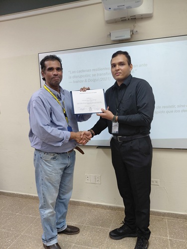 Bajo el lema “Impulsando el desarrollo a través del conocimiento”, el Dr. Torres presentó la conferencia: “Logística Inteligente y Resiliente: Innovaciones Estratégicas en la Gestión de la Cadena de Suministros”