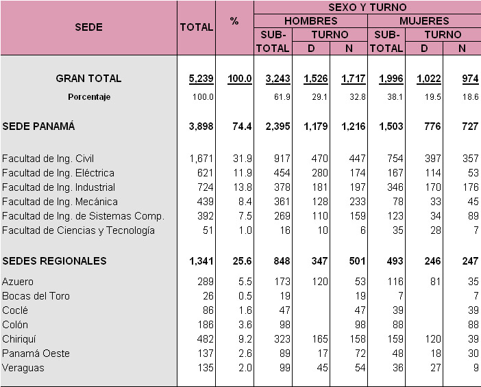 MATRÍCULA POR SEXO Y TURNO, SEGÚN SEDE,