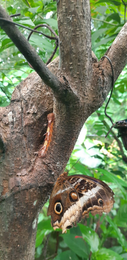 Posteriormente, se realizó un recorrido por el mariposario, un emprendimiento educativo dedicado a la reproducción de mariposas nativas y al mantenimiento de un espacio que recrea las condiciones de su hábitat natural. Los estudiantes aprendieron sobre la relación entre las mariposas y sus plantas hospederas, en las cuales depositan sus huevos y de las que se alimentan sus larvas.