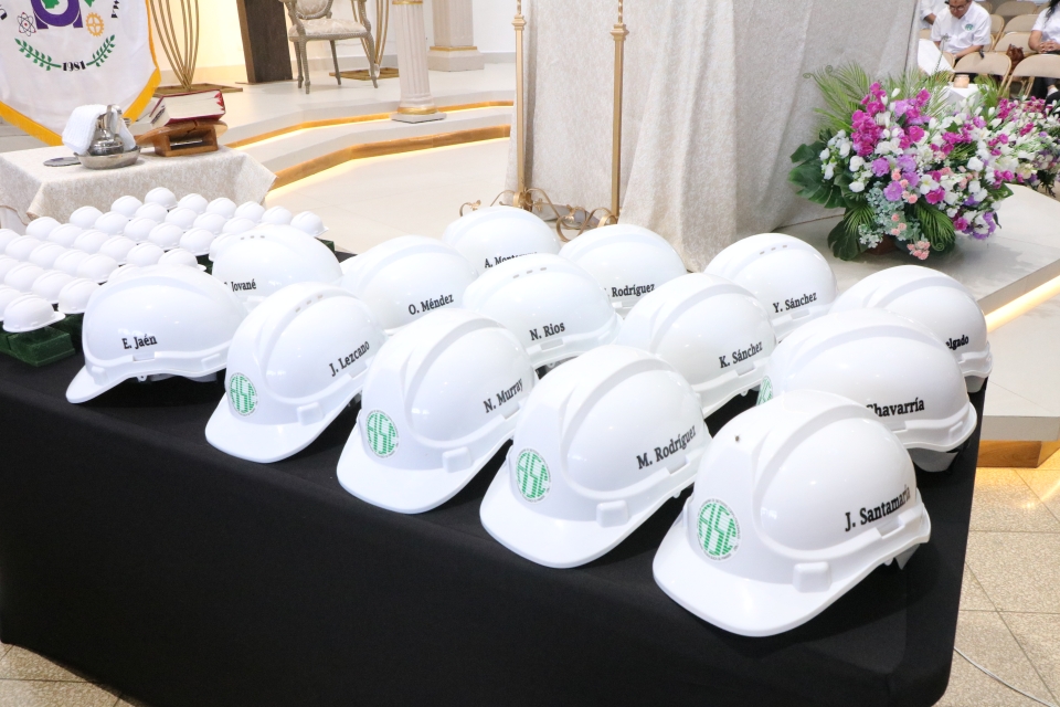Durante la ceremonia, el programa inició con una emotiva misa en la que se bendijeron los cascos. Posteriormente, se llevó a cabo el acto de entrega de los cascos y certificados, que comenzó con las palabras de bienvenida de la subdirectora Académica, Mgtr. Cecilia de Beitia, quien felicitó a todos los organizadores por hacer realidad esta primera Ceremonia de Imposición de Cascos en la FISC, y ofreció un reconocimiento especial a la Coordinadora de la Facultad, Mgtr. Lashmi Medina, por el entusiasmo, dedicación y liderazgo que dio para garantizar el éxito del evento.