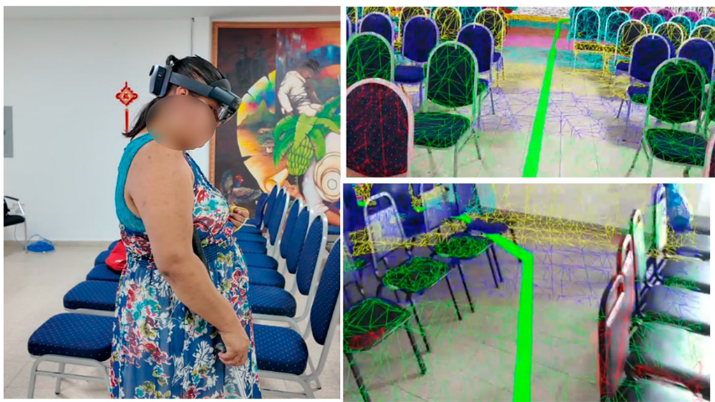 Tecnología que emplea gafas de realidad aumentada para permitir que personas con discapacidad visual sigan trayectorias asignadas y eviten obstáculos en tiempo real, mediante algoritmos diseñados para entornos complejos y dinámicos.