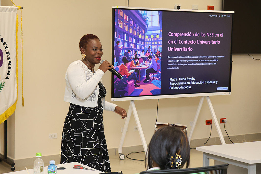 Las palabras de bienvenida las brindó la Mgtr. María Victoria Arce, Directora de Equiparación de Oportunidades de la UTP, quien expresó “La educación se transforma cuando valoramos las diferencias, cuando podemos comprender que cada estudiante aprende de manera única y cuando asumimos la inclusión como un compromiso diario en nuestras buenas prácticas docentes. Educar desde la diversidad no solo nos lleva a tener que adaptar metodologías y realizar ajustes razonables dentro de nuestras aulas, sino también fortalecer la empatía, el respeto y la equidad entre nuestros estudiantes”.