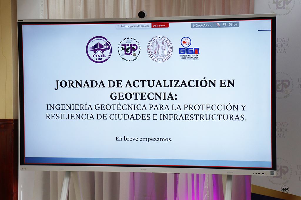 El grupo de investigación Grupo de Investigación en Geotecnia Aplicada (GIGA) de la Facultad de Ingeniería Civil (FIC) de la Universidad tecnológica de Panamá (UTP), organizó la Jornada de Actualización en Geotecnia: "Ingeniería Geotécnica para la protección y resiliencia de ciudades e infraestructuras", el 24 de marzo.