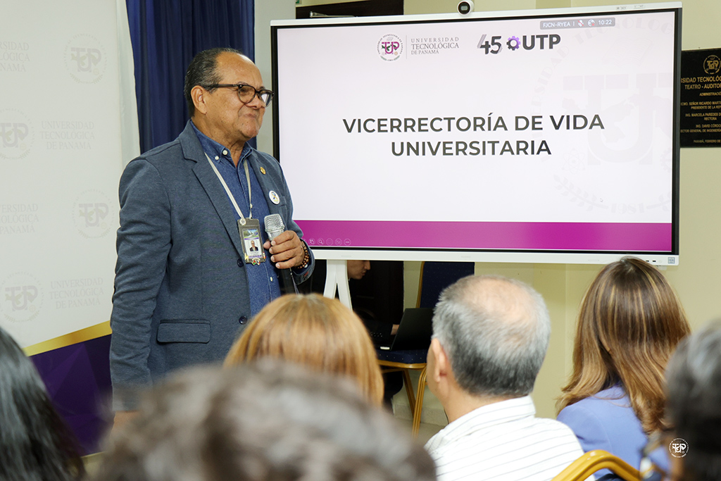 Las palabras de bienvenida de este evento las brindó la Dra. Mirtha Moore, Vicerrectora Académica de la UTP, quien en su mensaje expresó a los estudiantes que disfruten su estadía en la parte humana, integral y en sus estudios.