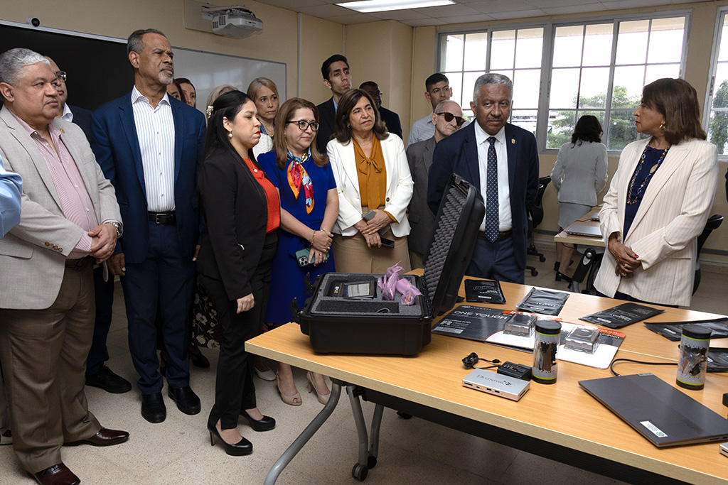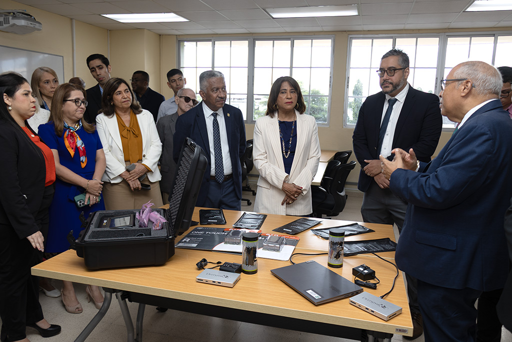 Durante el recorrido por este laboratorio estuvo presentes la Dra. Lilia Muñoz, Vicerrectora de Investigación, Postgrado y Extensión; el Mgtr. Alex Matus, Vicerrector de Vida Universitaria; la Dra. Jessica Guevara, Directora, de CEMCIT-AIP; el secretario nacional de la Senacyt, Dr. Eduardo Ortega Barría, docentes, entre otros.
