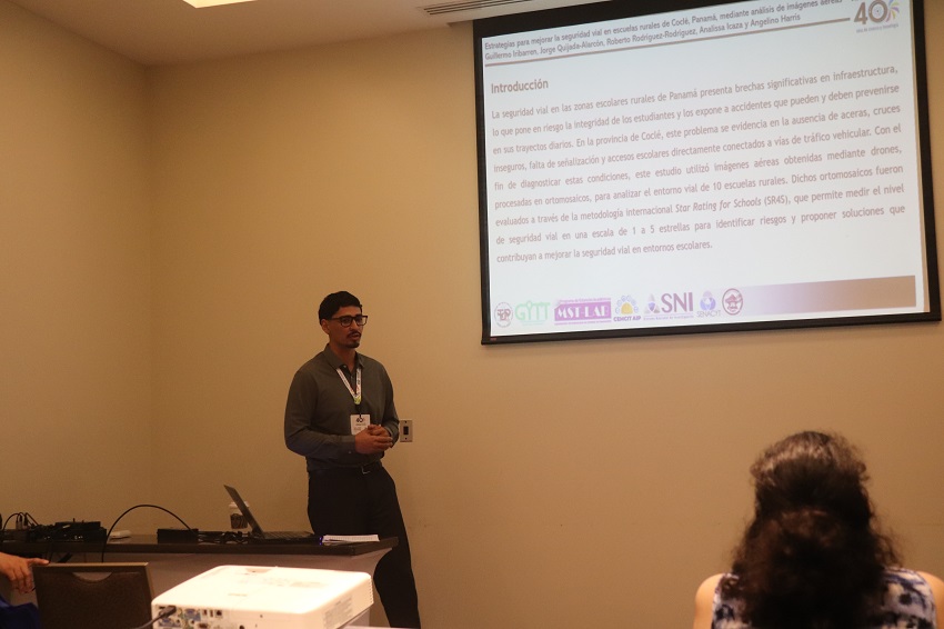 Por otro lado, tenemos ponencia de estudiantes como: Stefanie Lan-Li, de la Facultad de Ingeniería Civil (FIC), Integrante de Estancias Académicas del Laboratorio de Modelación de Sistemas de Transporte, con su tema: “Modelación de Alternativas para la mejora de la seguridad vial en intersecciones críticas en David”. Meybi Valdés-González, de la Facultad de Ingeniería Civil (FIC), Integrante de Estancias Académicas del Laboratorio de Modelación de Sistemas de Transporte, con su tema: “Caracterización del comportamiento de los conductores y peatones ante un cruce peatonal en David” y Guillermo Iribarren, de la Facultad de Ingeniería Civil (FIC), Integrante de Estancias Académicas del Laboratorio de Modelación de Sistemas de Transporte, con el tema: “Estrategias para mejorar la seguridad vial en escuelas rurales de Coclé, Panamá, mediante análisis de imágenes aéreas”. Estos estudiantes expositores son parte del Grupo de Investigación de Transporte y Territorio bajo el asesoramiento de los investigadores Dr. Jorge Quijada Alarcón; Ing. Analissa Icaza, Msc.; y el Dr. Roberto Rodríguez Rodríguez.