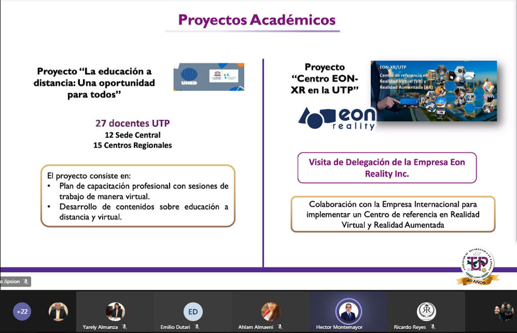 Durante la actividad, el Ing. Héctor M. Montemayor Á., compartió con los miembros del Consejo su Informe de Gestión, en el que destacó aspectos importantes relacionados a la posición que ocupa la UTP en algunos Rankings Internacionales, Proyectos Académicos, el Proceso de Admisión para el periodo 2022; Actividades complementarias de laboratorios que se han activado durante la pandemia, Proyectos Sociales y Proyectos de Investigación e Innovación.