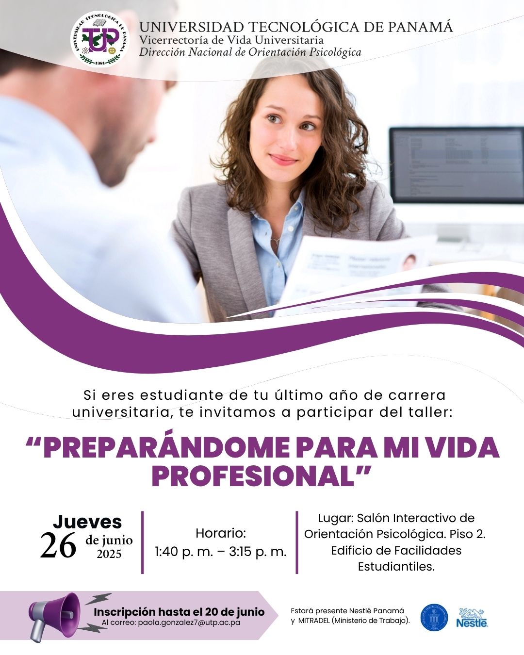 Se llevará a cabo el Taller: "Preparándome Para Mi Vida Profesional".