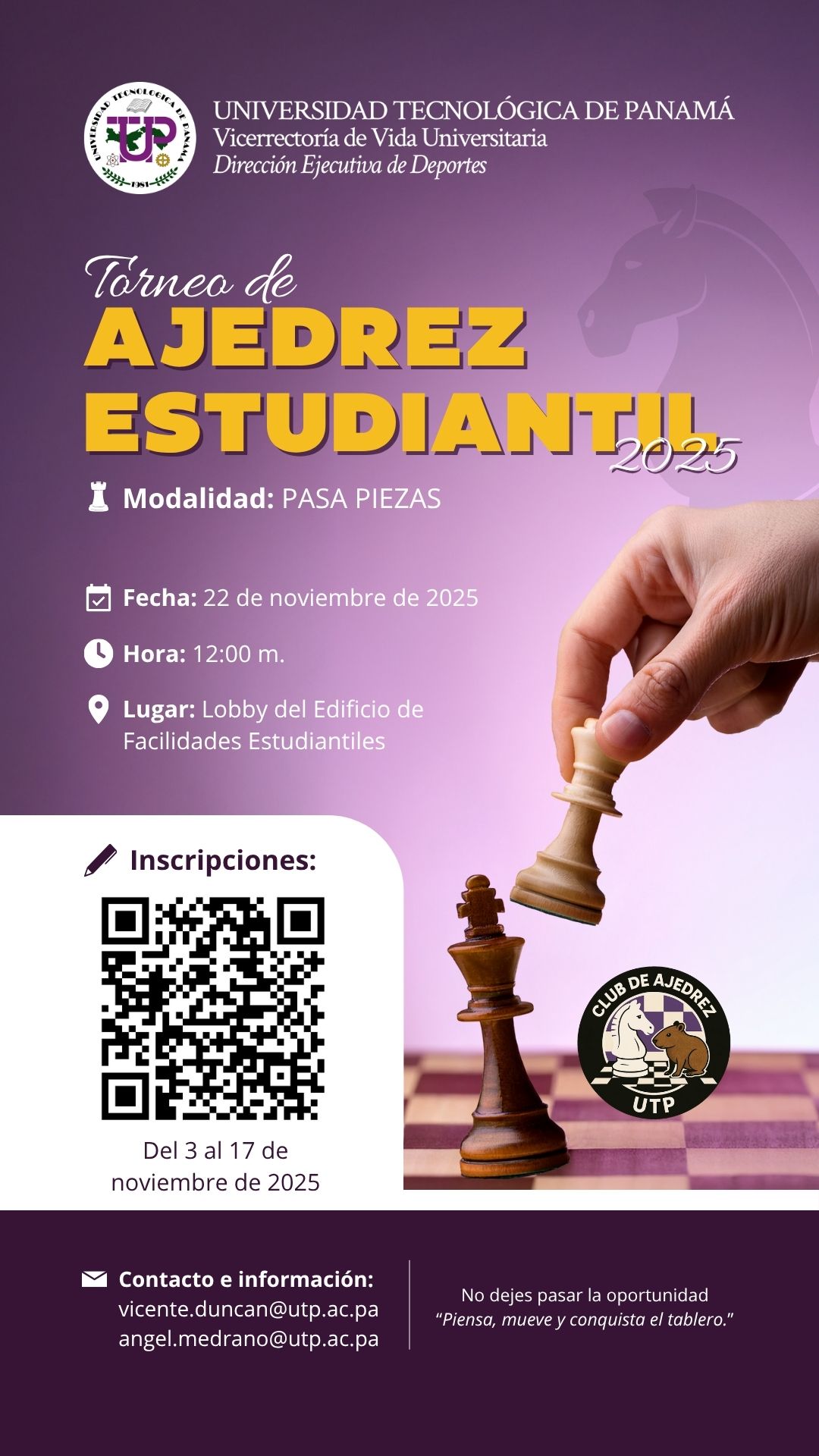 Se llevará a cabo el Torneo de Ajedrez Estudiantil 2025.