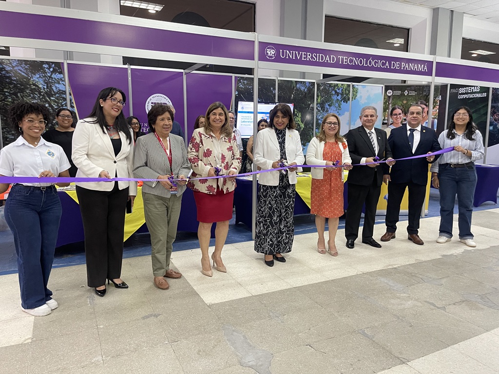 Le correspondió a la Dra. Ángela Laguna Caicedo, Rectora de la Universidad Tecnológica de Panamá, acompañada de su equipo de trabajo realizar el corte de cinta de los tres stands de la UTP: Editorial Universitaria y el Centro de Distribución y Librería y el stand de Facultades.