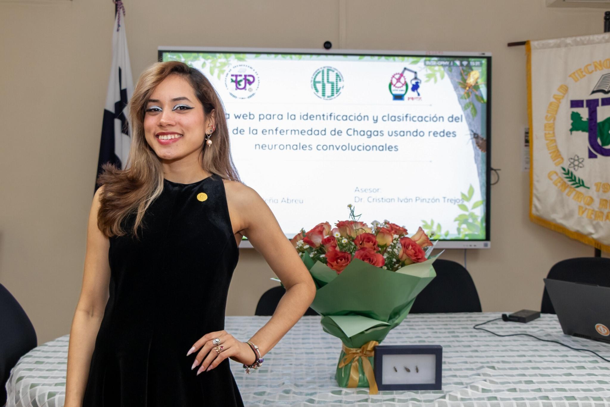 La estudiante Victoria Ludeña, de la Licenciatura en Ingeniería de Sistemas y Computación del Centro Regional de la Universidad Tecnológica de Panamá (UTP) en Veraguas, realizó el 19 de noviembre de 2025 la sustentación de su trabajo de fin de carrera titulado “Sistema web para la identificación y clasificación del vector de la enfermedad de Chagas usando redes neuronales convolucionales”.